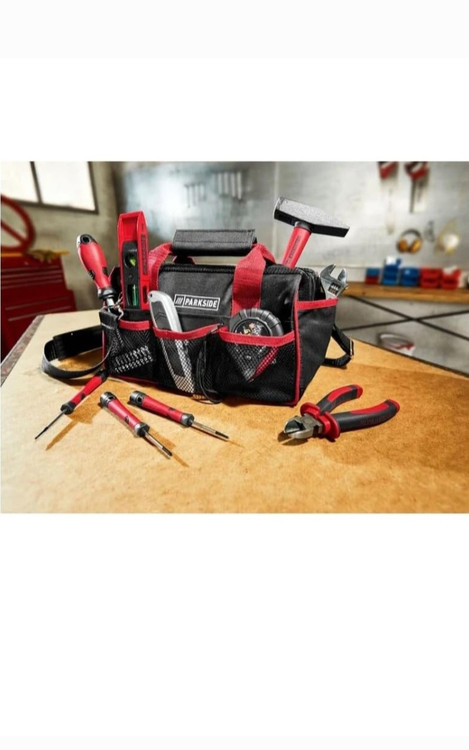 کیف ابزار پارکساید آلمان با دارا بودن ابزار های ضروری، گزینه بسیار مناسبی برای خانه، ماشین و نیز افراد حرفهای از جمله برقکار، نصاب و ... میباشد. جنس کیف از برزنت با کیفیت و ضدآب بوده و دارای چندین جیب و جای ابزار میباشد که با چیدمان حرفهای، باعث نظم بخشیدن به ابزار شما میگردد.